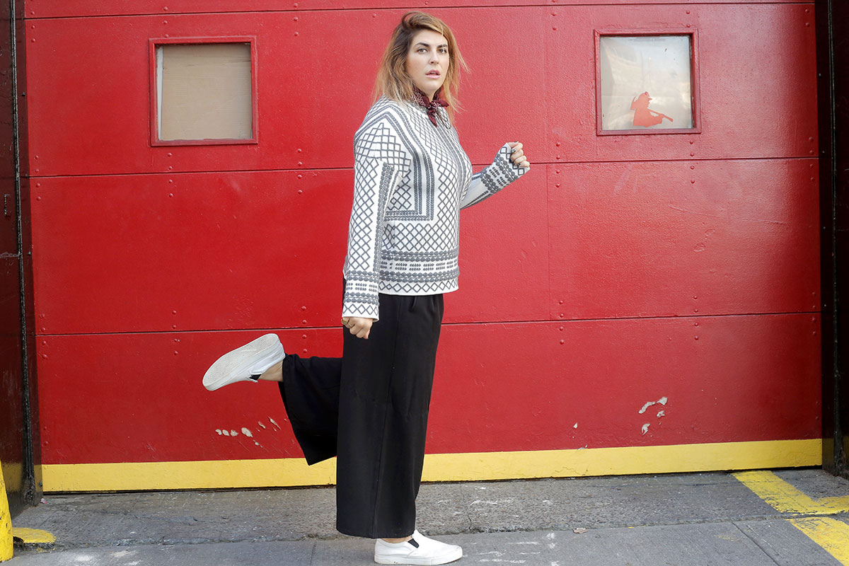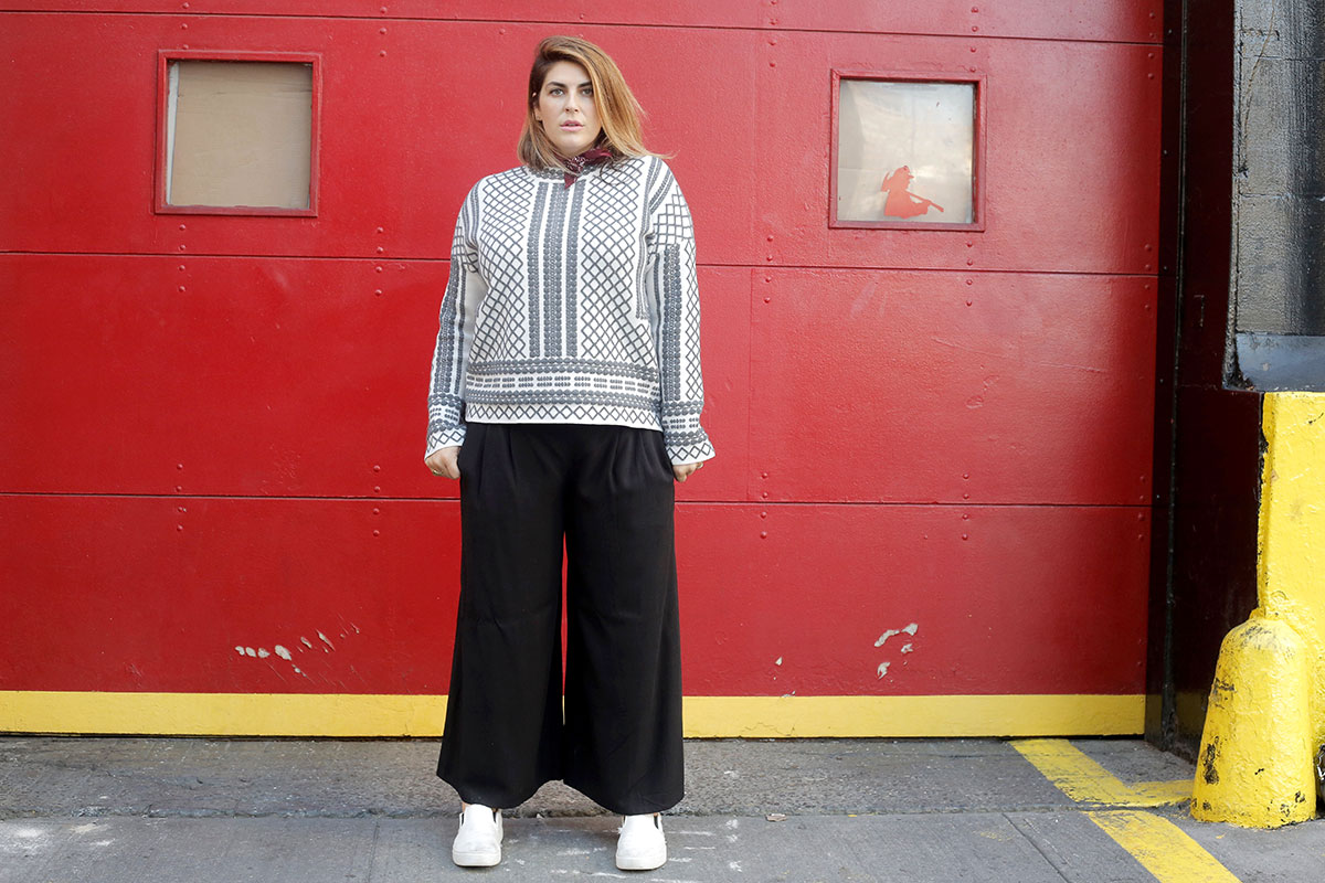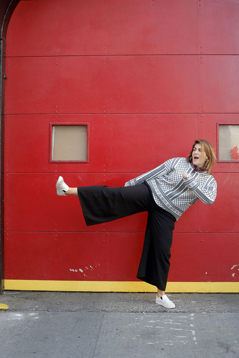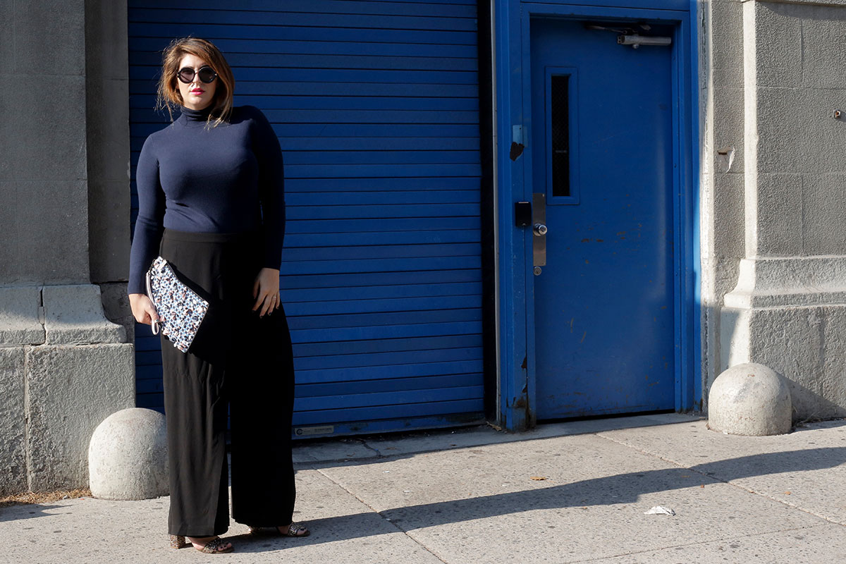 We chatted and Amelia agreed to help me un-dead my look if I would agree to ditch the skinnies and try some PANTS. As in those wide-legged trousers that strike fear into the hearts of so many of us curvaceous ladies. Of course I said yes – I’m always eager to exit my comfort zone – but in truth I was totally nervous. Not to spill State secrets here, but my dressing formula tends more toward a form-fitting lower half with volume experiments relegated to my northern hemisphere. It’s just where I’m most comfortable. But with Amelia at the wheel, I will agree to pretty much anything, so off we went.