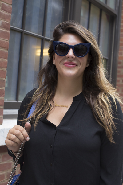 At another show I highlighted accessories, mixing a classic Chanel bag with my favorite trendy new Kendall Jenner-inspired sneakers. My go-to Eileen Fisher romper was the perfect black backdrop for a look that screamed either Chic Fashion Person or Rich Nurse (you tell me!).